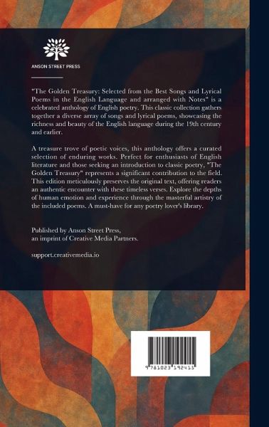 "The Golden Treasury: Selected from the Best Songs and Lyrical Poems in the English Language and arranged with Notes" is a celebrated anthology of English poetry. This classic collection gathers together a diverse array of songs and lyrical poems, showcasing the richness and beauty of the English language during the 19th century and earlier. A treasure trove of poetic voices, this anthology offers a curated selection of enduring works. Perfect for enthusiasts of English literature and those seeking an introduction to classic poetry, "The Golden Treasury" represents a significant contribution to the field. This edition meticulously preserves the original text, offering readers an authentic encounter with these timeless verses. Explore the depths of human emotion and experience through the masterful artistry of the included poems. A must-have for any poetry lover's library. This work has been selected by scholars as being culturally important, and is part of the knowledge base of civilization as we know it. This work is in the public domain in the United States of America, and possibly other nations. Within the United States, you may freely copy and distribute this work, as no entity (individual or corporate) has a copyright on the body of the work. Scholars believe, and we concur, that this work is important enough to be preserved, reproduced, and made generally available to the public. We appreciate your support of the preservation process, and thank you for being an important part of keeping this knowledge alive and relevant.