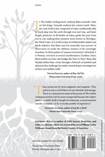The Golden Underground takes its title from a section of Wallace Stevens's poem "Sunday Morning." Like "Sunday Morning," The Golden Underground offers a blend of the mythic and the religious as award-winning poet Anthony Butts records his search for meaning and understanding in everyday life. In this profound volume, Butts observes the relationships around him, including those of families and larger communities, to give a fittingly down-to-earth interpretation of the golden rule. The Golden Underground continues Butts's tradition of presenting spiritual ideas to the forefront of American letters with classicism and complexity. Butts's roots as a native Detroiter are evident as a great number of poems take place in various Michigan locales, including metro Detroit, Kalamazoo, and Grand Rapids. A mythic section revolves around a recurring character known as the Lady of the Lake, with the particular lake being Lake Michigan. The religious portion of the book concerns itself with ancient Celtic spirituality, when the Irish were some of the foremost thinkers in the early Catholic Church. In fact, each poem in the final section of the book, "Pygmalion," was written after meditating at sung Taize services as the poet became involved with Celtic spirituality in the months following the September 11 tragedy. The Gospel According to John also finds its way into The Golden Underground in terms of the philosophy of good living found in each poem. The Golden Underground is a book of peace, which continues Butts's tradition of drawing seemingly disparate congregations of readers together in the enjoyment of verse. Fans of Butts's previous work as well as general readers of poetry will enjoy this vital and insightful volume.