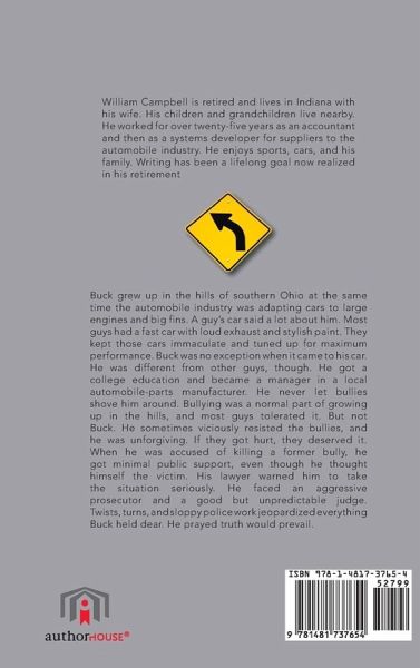 Buck grew up in the hills of southern Ohio at the same time the automobile industry was adapting cars to large engines and big fins. A guy's car said a lot about him. Most guys had a fast car with loud exhaust and stylish paint. They kept those cars immaculate and tuned up for maximum performance. Buck was no exception when it came to his car. He was different from other guys, though. He got a college education and became a manager in a local automobile-parts manufacturer. He never let bullies shove him around. Bullying was a normal part of growing up in the hills, and most guys tolerated it. But not Buck. He sometimes viciously resisted the bullies, and he was unforgiving. If they got hurt, they deserved it. When he was accused of killing a former bully, he got minimal public support, even though he thought himself the victim. His lawyer warned him to take the situation seriously. He faced an aggressive prosecutor and a good but unpredictable judge. Twists, turns, and sloppy police work jeopardized everything Buck held dear. He prayed truth would prevail.