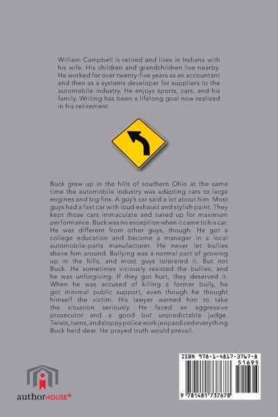 Buck grew up in the hills of southern Ohio at the same time the automobile industry was adapting cars to large engines and big fins. A guy's car said a lot about him. Most guys had a fast car with loud exhaust and stylish paint. They kept those cars immaculate and tuned up for maximum performance. Buck was no exception when it came to his car. He was different from other guys, though. He got a college education and became a manager in a local automobile-parts manufacturer. He never let bullies shove him around. Bullying was a normal part of growing up in the hills, and most guys tolerated it. But not Buck. He sometimes viciously resisted the bullies, and he was unforgiving. If they got hurt, they deserved it. When he was accused of killing a former bully, he got minimal public support, even though he thought himself the victim. His lawyer warned him to take the situation seriously. He faced an aggressive prosecutor and a good but unpredictable judge. Twists, turns, and sloppy police work jeopardized everything Buck held dear. He prayed truth would prevail.
