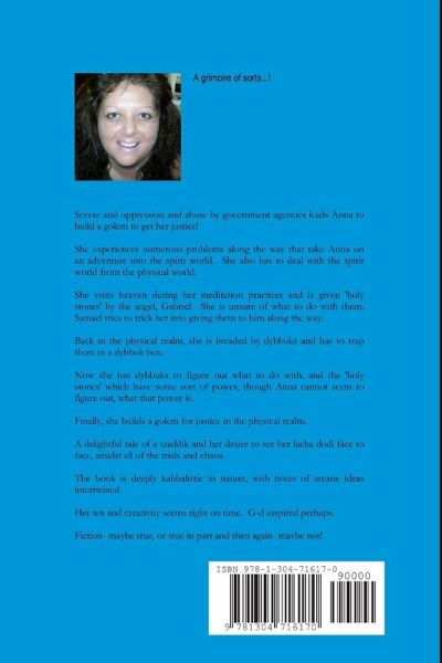 Severe and oppression and abuse by government agencies leads Anna to build a golem to get her justice! She experiences numerous problems along the way that take Anna on an adventure into the spirit world. She also has to deal with the spirit world from the physical world. She visits heaven during her meditation practices and is given 'holy stones' by the angel, Gabriel. She is unsure of what to do with them. Samael tries to trick her into giving them to him along the way. Back in the physical realm, she is invaded by dybbuks and has to trap them in a dybbuk box. Now she has dybbuks to figure out what to do with, and the 'holy stones' which have some sort of power, though Anna cannot seem to figure out, what that power is. Finally, she builds a golem for justice in the physical realm. A delightful tale of a tzaddik and her desire to see her lacha dodi face to face, amidst all of the trials and chaos. The book is deeply kabbalistic in nature, with notes of arcane ideas intertwined.