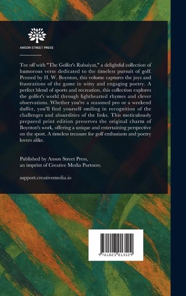 Tee off with "The Golfer's Rubaiyat," a delightful collection of humorous verse dedicated to the timeless pursuit of golf. Penned by H. W. Boynton, this volume captures the joys and frustrations of the game in witty and engaging poetry. A perfect blend of sports and recreation, this collection explores the golfer's world through lighthearted rhymes and clever observations. Whether you're a seasoned pro or a weekend duffer, you'll find yourself smiling in recognition of the challenges and absurdities of the links. This meticulously prepared print edition preserves the original charm of Boynton's work, offering a unique and entertaining perspective on the sport. A timeless treasure for golf enthusiasts and poetry lovers alike. This work has been selected by scholars as being culturally important, and is part of the knowledge base of civilization as we know it. This work is in the public domain in the United States of America, and possibly other nations. Within the United States, you may freely copy and distribute this work, as no entity (individual or corporate) has a copyright on the body of the work. Scholars believe, and we concur, that this work is important enough to be preserved, reproduced, and made generally available to the public. We appreciate your support of the preservation process, and thank you for being an important part of keeping this knowledge alive and relevant.