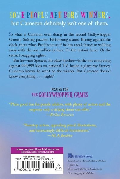 Some people are born winners, but Cameron definitely isn't one of them. So what is Cameron even doing in the second Gollywhopper Games? Solving puzzles. Performing stunts. Racing against the clock, that's what. But it's not as if he has a real chance at walking away with the one million dollars. Or the instant fame. Or the eternal bragging rights. But he?not Spencer, his older brother?is the one competing against 999,999 kids on national TV, inside a giant toy factory. Cameron knows he won't be the winner. But Cameron doesn't know everything . . . . right?