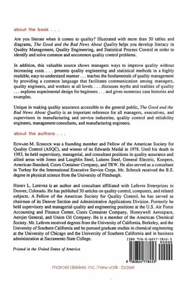 This book provides a vehicle to foster interaction of the elements of the modern approach to quality, including statistical applications, quality and reliability engineering, management, and motivational aspects. It is intended for those in manufacturing, engineering, marketing, and management.