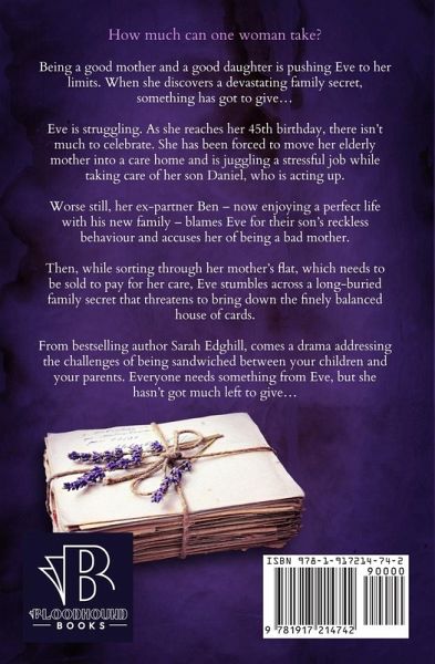 How much can one woman take? Being a good mother and a good daughter is pushing Eve to her limits. When she discovers a devastating family secret, something has got to give... Eve is struggling. As she reaches her 45th birthday, there isn't much to celebrate. She has been forced to move her elderly mother into a care home and is juggling a stressful job while taking care of her son Daniel, who is acting up. Worse still, her ex-partner Ben - now enjoying a perfect life with his new family - blames Eve for their son's reckless behaviour and accuses her of being a bad mother. Then, while sorting through her mother's flat, which needs to be sold to pay for her care, Eve stumbles across a long-buried family secret that threatens to bring down the finely balanced house of cards. From bestselling author Sarah Edghill, comes a drama addressing the challenges of being sandwiched between your children and your parents. Everyone needs something from Eve, but she hasn't got much left to give...