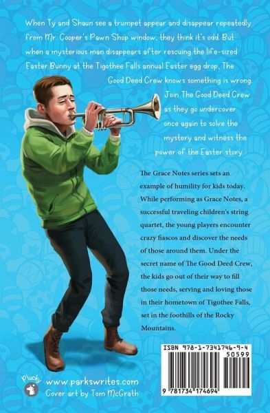 When Ty and Shaun see a trumpet appear and disappear repeatedly from Mr. Cooper's Pawn Shop window, they think it's odd. But when a mysterious man disappears after rescuing the life-sized bunny at the Tigothee Falls annual Easter egg drop, The Good Deed Crew knows something is wrong. Join The Good Deed Crew as they go undercover once again to solve the mystery and witness the power of the Easter story. A breath of fresh air in a world of self-focus, the Grace Notes series sets a new example of humility for kids today. While performing as Grace Notes, a successful traveling children's string quartet, the four young players encounter crazy fiascos and discover the needs of those around them. Under the secret name of The Good Deed Crew and with the help of Addy and Jenny's Grammy E, the kids go out of their way to fill those needs, serving and loving those in their hometown of Tigothee Falls, set in the foothills of the Rocky Mountains.