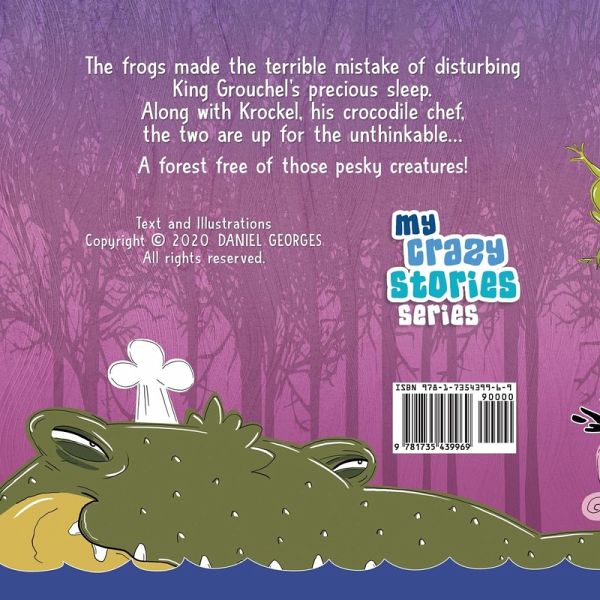 It was a very bad night to be a frog! The frogs made the terrible mistake of disturbing King Grouchel's precious sleep. Along with Krockel, his crocodile chef, the two are up for the unthinkable... A forest free of those pesky creatures! A laugh-out-loud picture book with two wicked characters that deliver a comedy punch to crack up both kids and adults. What's the takeaway? Don't mess with frogs! What will children learn from this book? Raising the kids' sensitivity towards nature and wild life has never been more important. Behind the example of frogs, this children's book inspires awareness and respect for all creatures that contribute to the balance of our wonderful natural environment. No matter how small, they are all good for something! BOOK 7 from the quirky series MY CRAZY STORIES - Children's book Age 3-8 What makes My Crazy Stories series quite special is that it focuses on kids' character building by encouraging young readers to develop a deeper awareness of themselves and cultivate emotional confidence as they grow up. Enjoy reading!