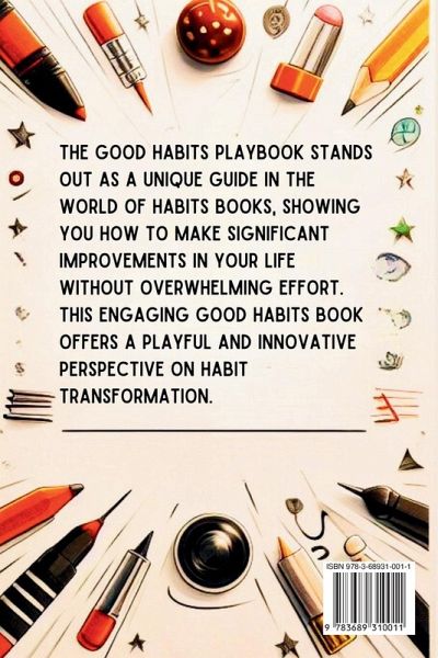 "The Good Habits Playbook" stands out as a unique guide in the world of habits books, showing you how to make significant improvements in your life without overwhelming effort. This engaging good habits book offers a playful and innovative perspective on habit transformation, appealing to both men and women. It is a journey into making the development of good habits an enjoyable and rewarding experience. Whether you are looking to reshape your lifestyle or fine-tune your existing routines, this forming good habits book provides practical, easy-to-implement strategies that make the process of changing your habits not only effective but also fun.