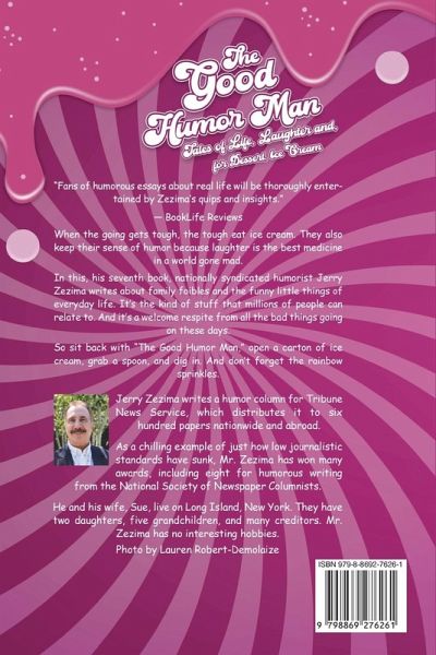When the going gets tough, the tough eat ice cream. They also keep their sense of humor because laughter is the best medicine in a world gone mad. In this, his seventh book, nationally syndicated humorist Jerry Zezima writes about family foibles and the funny little things of everyday life. It's the kind of stuff that millions of people can relate to. And it's a welcome respite from all the bad things going on these days. So sit back with "The Good Humor Man," open a carton of ice cream, grab a spoon, and dig in. And don't forget the rainbow sprinkles.