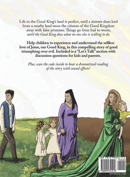 Life in The Good King's land is perfect until a sinister slum lord from a nearby land woos the citizens of The Good Kingdom away with false promises. Things go from bad to worse until The Good King does what no one else is willing to do. Help children to understand the selfless love of Jesus, our Good King, in this unique and compelling, vibrantly-illustrated allegory. Also included is an immersive audio experience, a "Let's Talk" section with a discussion guide for families, and additional Biblical study content for parents. "The Good King" is sure to become a favorite bedtime story or new Christmas reading tradition for years to come!