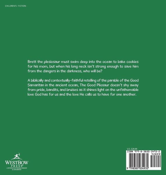 Brett the plesiosaur must swim deep into the ocean to bake cookies for his mom, but when his long neck isn't strong enough to save him from the dangers in the darkness, who will be? A biblically and contextually-faithful retelling of the parable of the Good Samaritan in the ancient ocean, The Good Pliosaur doesn't shy away from pride, bandits, and bruises as it shines light on the unfathomable love God has for us and the love He calls us to have for one another.