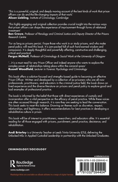 'This book is innovative and very informative. As a former Prison Officer, myself, it was sadly often the case that we did not see the successes that can happen. The accounts in this book are inspirational from the authors showing that indeed many prisoners go on to change their lives and undeniably payback tenfold to a system that needs careful consideration and change. In this respect it provides a sense of hope that is sadly often lacking within our prison systems. It was heart-warming to read the gratitude in these pages and that on occasions Prison Officers do get it right in the realms of undertaking an often difficult and thankless task. This book does not raise security concerns, it is not ex-prisoners telling Prison Officers how to do their job properly, moreover it is an honest and open account of the power that positivistic relationships can have to help overcome adversity if small adjustments are made. In my opinion it is a must read for any Prison Officer and indeed anyone who wants to explore the complex power of relationships taking place within the carceral space.'