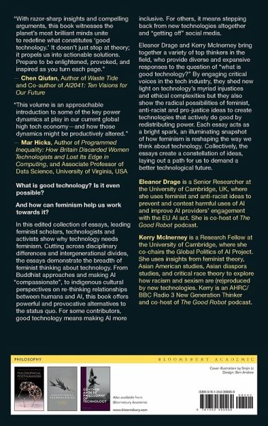 Introduction: Good Technology Is Feminist, Eleanor Drage and Kerry McInerney (Leverhulme Centre for the Future of Intelligence, UK) Part I: Good Relations 1. Good Technology Is Cooperative, Blaise Agüera y Arcas (Google Research) 2. Good Technology Is Messy, Jason Edward Lewis (Concordia University, Canada) 3. Good Technology Is Biophilic, N. Katherine Hayles (Duke University, USA) 4. Good Technology Is Earthly, Rosi Braidotti (Utrecht University, the Netherlands) 5. Good Technology Is Intergenerational, Sneha Revanur (President of Encode Justice) Part II: Good Systems 6. Good Technology Is Inclusive, Margaret Mitchell (Chief Ethics Scientist at Hugging Face) 7. Good Technology Is Possible - But There Are Conditions, Soraj Hongladarom (Chulalongkorn University, Bangkok) 8. Good Technology Is Community-Centric, Jennifer Lee (American Civil Liberties Union Washington, USA) 9. Good Technology Is Participatory, David Adelani (University College London, UK) Part III: Good Designs 10. Good Technology Is Vulnerable, Os Keyes (University of Washington, USA) 11. Good Technology Is Slow (to Scale), Ranjit Singh (Data & Society Research Institute) 12. Good Technology is Accessible, Not Just "Good Enough", Meryl Alper (Northeastern University, UK) 13. Good Technology Needs an Emergency Exit Door, Priya Goswami (Co-Founder of Sahiyo and Mumkin) 14. Good Technology Invites Response, hannah holtzclaw (Simon Fraser University, Canada) and Wendy Hui Kyong Chun (Simon Fraser University, Canada) Part IV: Good Visions 15. Good Technology Is a Portal to Other Worlds, Neda Atanasoski (UC Santa Cruz, USA) and Felicity Amaya Schaeffer (UC Santa Cruz, USA) 16. Good Technology Is/Not Asian Women, Anne Anlin Cheng (Princeton University, USA) 17. Good Technology Holds Up a Mirror to Ourselves, Michele Elam (Stanford University, USA) 18. Good Technology Needs Good Stories, Kanta Dihal (Leverhulme Centre for the Future of Intelligence, UK) Part V: Good Rebellions 19. Good Technology Challenges Power, Catherine D'Ignazio (Massachusetts Institute of Technology, USA) 20. Good Technology Is Free (At Least for a Moment), Frances Negrón-Muntaner (University of Columbia, USA) 21. Good Technology Subverts Militarism, Kate Chandler (Georgetown University, USA) 22. Good Technology Is a Fantasy, Jack Halberstam (Columbia University, USA)