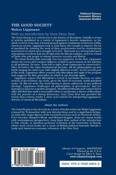 The Good Society is the eleventh in a series of books written by Walter Lippmann reissued by Transaction with new introductions and in a paperback format. As with other major figures of the twentieth century such as Thorstein Veblen, Peter Drucker, Margaret Mead, and Richard Hoggart, these are classic books with contemporary perspectives.