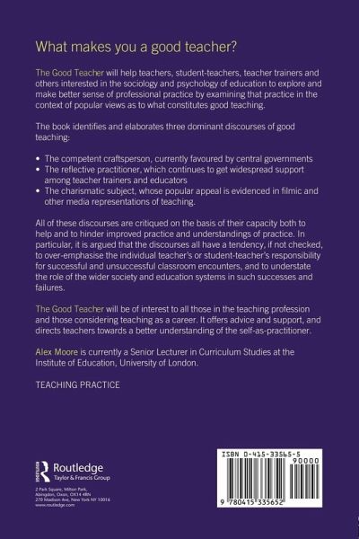 Moore's insightful text explores and makes better sense of professional practice by examining that practice in the context of popular views. The book identifies and elaborates three dominant discourses of good teaching: * the competent craftsperson, currently favoured by central governments * the reflective practitioner, which continues to get widespread support among teacher trainers and educators * the charismatic subject, whose popular appeal is evidenced in filmic and other media representations of teaching. All of these are critiqued on the basis of their capacity both to help and to hinder improved practice and understandings of practice. In particular, it is argued that the discourses all have a tendency, if not checked, to over-emphasise the individual teacher's or student teacher's responsibility for successful and unsuccessful classroom encounters, and to understate the role of the wider society and education system in such successes and failures. Winner of a Society for Education Studies book prize in 2005, this is a well-informed source of advice and support for teachers and anyone considering teaching as a career.