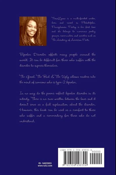 The Good, The Bad & The Ugly allows readers into the mind of someone who is type-2 bipolar. In no way do the poems reflect bipolar disorder in its entirety. There is no cure written between the lines and it doesn't serve as a full explanation about the disorder. However, this book can be used as a comfort to those who suffer and a commentary for those who do not understand.