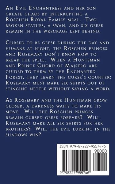 An Evil Enchantress and her son create chaos by interrupting a Roschen Royal Family meal. Two broken statues, a swan, and six geese remain in the wreckage left behind. To keep her brothers safe, Princess Rosemary pretends to be a goose girl. When the curse makes that impossible, they leave the castle grounds and head to the safest place they can think of: the cabin where they spent their summers as children. Faced with being geese during the day and humans at night, the Roschen princes and Rosemary try to figure out how to break the curse they are under. When a Huntsman and Prince Chord of Majstro are guided to them by the Enchanted Forest's influence, they learn the solution to breaking the curse: Rosemary must make six shirts out of stinging nettle and she cannot speak a word until the last one is finished As Rosemary and the Huntsman grow closer, a darkness hides, waiting for the right moment to strike. Will the Roschen princes remain cursed geese forever? Will Rosemary make all six shirts for her brothers? Will the evil lurking in the shadows win? The Goose Girl is a mash-up of 'Sleeping Beauty,' 'The Goose Girl', and 'The Six Swans,' along with a few other fairy tales sprinkled into the mix. It is book nine in the Enchanted Forest series, but book two in the Roschen Chronicles Duology. It can be read separately from the rest of the series, but is best read with The Swan Princess.