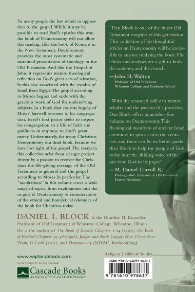 To many people the law stands in opposition to the gospel. While it may be possible to read Paul's epistles this way, the book of Deuteronomy will not allow this reading. Like the book of Romans in the New Testament, Deuteronomy provides the most systematic and sustained presentation of theology in the Old Testament. And like the Gospel of John, it represents mature theological reflection on God's great acts of salvation, in this case associated with the exodus of Israel from Egypt. The gospel according to Moses begins and ends with the gracious work of God for undeserving subjects. In a book that consists largely of Moses' farewell sermons to his congregation, Israel's first pastor seeks to inspire his congregation to a life of faith and godliness in response to God's great mercy. Unfortunately, for many Christians, Deuteronomy is a dead book, because we have lost sight of the gospel. The essays in this collection arise from a larger project driven by a passion to recover for Christians the life-giving message of the Old Testament in general and the gospel according to Moses in particular. The "meditations" in this volume cover a wide range of topics, from explorations into the origins of Deuteronomy to considerations of the ethical and homiletical relevance of the book for Christians today.