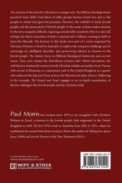 The mission of the church to the Jews is a unique one. The biblical, theological and practical issues differ from those with other groups because Israel was, and is, the people to whom God gave his promises. However, the unbelief of many Jewish people and the persecution of Jewish people in the name of Jesus makes mission to the Jews uniquely difficult, requiring considerable sensitivity. But it is also full of hope, for there is promise of both a remnant and a fullness coming to faith in Jesus the Messiah. The lectures in this book were part of a series organized by Christian Witness to Israel in Australia to explore this unique challenge and to encourage an intelligent, heartfelt, and persevering interest in mission to the Jewish people. The studies focus on Biblical, theological, historical, and current issues. They were named the Edersheim Lectures after Alfred Edersheim, the well-known nineteenth-century Jewish Christian scholar and author who served in Romania as a missionary and in the United Kingdom as a pastor. Following in his example, The Gospel and Israel engages in an in-depth examination of themes relating to the Jewish people and the Christian faith.