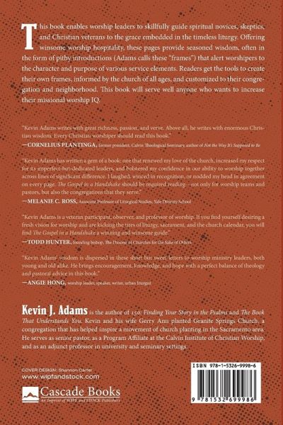 This book enables worship leaders to skillfully guide spiritual novices, skeptics, and Christian veterans to the grace embedded in the timeless liturgy. Offering winsome worship hospitality, these pages provide seasoned wisdom, often in the form of pithy introductions (Adams calls these ""frames"") that alert worshipers to the character and purpose of various service elements. Readers get the tools to create their own frames, informed by the church of all ages, and customized to their congregation and neighborhood. This book will serve well anyone who wants to increase their missional worship IQ.