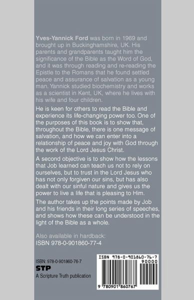 Yves-Yannick Ford was born in 1969 and spent his childhood in Buckinghamshire, UK. His parents and grandparents taught him the importance and value of the Bible as the Word of God, and it was through reading and re-reading the Epistle to the Romans that Yannick found settled peace and assurance of salvation as a young man. He studied biochemistry and works as a scientist in Kent, UK, where he lives with his wife and four children. He is keen for others to read the Bible and experience its life-changing power too, since it is "living and powerful, and sharper than any two-edged sword" (Hebrews 4:12), and God uses His Word to cause us to be born again (James 1:18; 1 Peter 1:23). This is one of the purposes of the commentary on Job - to show how, all through the Bible, there is one message of salvation, and how we can enter into a relationship of peace and joy with God through the work of the Lord Jesus Christ. A second objective is to show how the lessons that Job learned can teach us not to rely on ourselves, but to trust in the Lord Jesus who has not only forgiven our sins, but has also dealt with our sinful nature and gives us the power to live a life that is pleasing to Him. The author takes up the points made by Job and his friends in their long series of speeches, and shows how these can be understood in the light of the Bible as a whole.