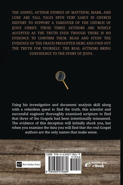 The Gospel author stories of Matthew, Mark, and Luke are tall tales spun very early in church history to support a takeover of the Church of Jesus Christ. These three authors are widely accepted as the truth even though there is no evidence to confirm them. Read and study the evidence of the fraud presented here and find out the truth for yourself. The real authors bring confidence to the story of Jesus.