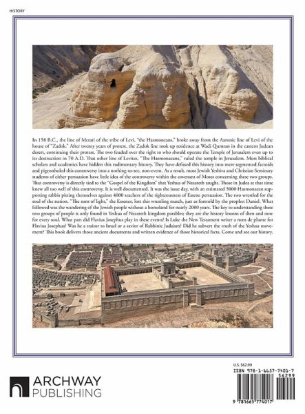 In 158 B.C., the line of Merari of the tribe of Levi, "the Hasmoneans," broke away from the Aaronic line of Levi of the house of "Zadok." After twenty years of protest, the Zadok line took up residence at Wadi Qumran in the eastern Judean desert, continuing their protest. The two feuded over the right to who should operate the Temple of Jerusalem even up to its destruction in 70 A.D. That other line of Levites, "The Hasmonaeans," ruled the temple in Jerusalem. Most biblical scholars and academics have hidden this rudimentary history. They have defused this history into mere segmented factoids and pigeonholed this controversy into a nothing-to-see, non-event. As a result, most Jewish Yeshiva and Christian Seminary students of either persuasion have little idea of the controversy within the covenant of Moses concerning these two groups. That controversy is directly tied to the "Gospel of the Kingdom" that Yeshua of Nazareth taught. Those in Judea at that time knew all too well of this controversy. It is well documented. It was the issue day, with an estimated 5000 Hasmonaean supporting rabbis pitting themselves against 4000 teachers of the righteousness of Essene persuasion. The two wrestled for the soul of the nation. "The sons of light," the Essenes, lost this wrestling match, just as foretold by the prophet Daniel. What followed was the wandering of the Jewish people without a homeland for nearly 2000 years. The key to understanding these two groups of people is only found in Yeshua of Nazareth kingdom parables; they are the history lessons of then and now for every soul. What part did Flavius Josephus play in these events? Is Luke the New Testament writer a nom de plume for Flavius Josephus? Was he a traitor to Israel or a savior of Rabbinic Judaism? Did he subvert the truth of the Yeshua movement? This book delivers those ancient documents and written evidence of those historical facts. Come and see our history.