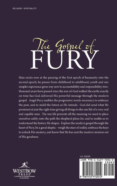 Man exists now at the passing of the first epoch of humanity into the second epoch; he passes from childhood to adulthood; youth and our simpler experience gives way now to accountability and responsibility; two-thousand years have passed since the son-of-God walked the earth; exactly on time has God delivered His powerful message through the modern gospel. Angel Fury enables the progressive words necessary to embrace the past, and to mold the future as He intends. God did send what He promised at just the right time giving all things to the one life of a very real and capable man. The one life presents all the meaning we need to place ourselves safely onto the path the shepherd plans for, and to enable us to understand the history He shapes. Explore the modern gospel through the heart of Fury, be a good skeptic - weigh the stars of reality, embrace the keys to unlock His mystery, and know that He has sent the modern mission out of His goodness.