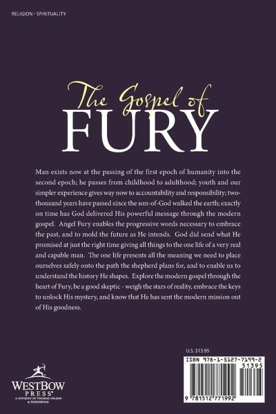 Man exists now at the passing of the first epoch of humanity into the second epoch; he passes from childhood to adulthood; youth and our simpler experience gives way now to accountability and responsibility; two-thousand years have passed since the son-of-God walked the earth; exactly on time has God delivered His powerful message through the modern gospel. Angel Fury enables the progressive words necessary to embrace the past, and to mold the future as He intends. God did send what He promised at just the right time giving all things to the one life of a very real and capable man. The one life presents all the meaning we need to place ourselves safely onto the path the shepherd plans for, and to enable us to understand the history He shapes. Explore the modern gospel through the heart of Fury, be a good skeptic - weigh the stars of reality, embrace the keys to unlock His mystery, and know that He has sent the modern mission out of His goodness.