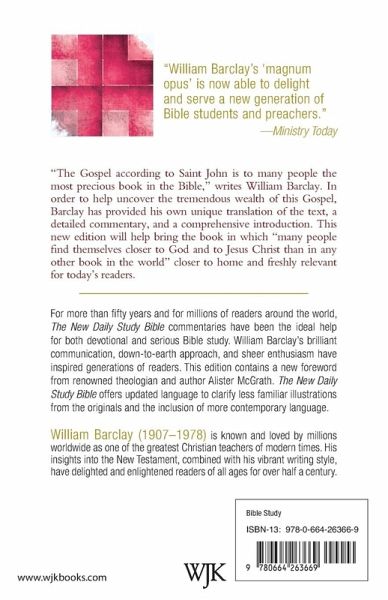 NOW IN AN ENLARGED PRINT EDITION!"The Gospel according to Saint John is to many people the most precious book in the Bible," states William Barclay. In order to help uncover the tremendous wealth of this Gospel, Barclay has provided his own unique translation of the text, a detailed commentary, and a comprehensive introduction. This new edition...