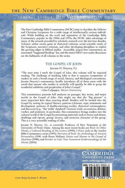 Readers will be invited into the Gospel of John by noting its typical literary patterns, rhetorical commonplaces and discourse. This 2007 commentary brings readers into the cultural world of the gospel by presenting materials such as honor and shame, challenge and riposte, gossip, secrecy, and sectarian character of the group.