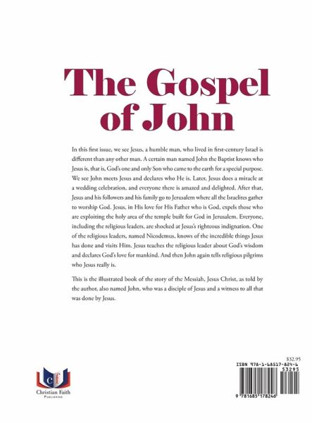 In this first issue, we see Jesus, a humble man, who lived in first-century Israel is different than any other man. A certain man named John the Baptist knows who Jesus is, that is, God's one and only Son who came to the earth for a special purpose. We see John meets Jesus and declares who He is. Later, Jesus does a miracle at a wedding celebration, and everyone there is amazed and delighted. After that, Jesus and his followers and his family go to Jerusalem where all the Israelites gather to worship God. Jesus, in His love for His Father who is God, expels those who are exploiting the holy area of the temple built for God in Jerusalem. Everyone, including the religious leaders, are shocked at Jesus's righteous indignation. One of the religious leaders, named Nicodemus, knows of the incredible things Jesus has done and visits Him. Jesus teaches the religious leader about God's wisdom and declares God's love for mankind. And then John again tells religious pilgrims who Jesus really is. This is the illustrated book of the story of the Messiah, Jesus Christ, as told by the author, also named John, who was a disciple of Jesus and a witness to all that was done by Jesus.