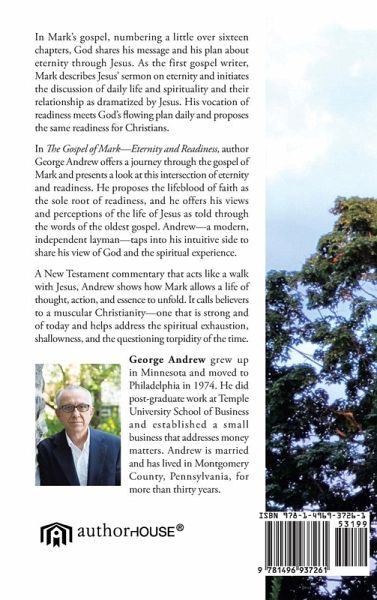 In Mark's gospel, a little over sixteen chapters, God messages Its plan regarding eternity via Jesus. It is Mark's description of Jesus's sermon on the topic of His experience of eternity. As the first gospel writer, Mark initiates the discussion of daily life (physical existence) and spirituality (holiness) and their relationship as dramatized by Jesus. His vocation of readiness meets God's flowing plan daily and proposes the same readiness for us. George Andrew's journal undertakes to understand this intersection of eternity and readiness. He proposes the lifeblood of faith as the sole root of readiness. He also suggests numerous points of view in his eight-year encounter with long-used fundamental words and concepts. Engaging Mark for over eight years, the author transports the reader through the gospel and to the Mystery of Life called God. The source of the book is the existential experience faced by most men and women. Simply, we experience the world from dawn until dusk daily as primarily uncaring. This is true whether you're rich or poor, any color, age, creed, or gender, living or near death, whatever your ancestry. If you can fully grasp this, you have some choices. First, you can succumb to the terror of life and turn into an opportunist, as a vegetable, a person with no moral compass. Or second, you may use the tools that life readily offers-reason, senses, yes, even religion-and think matters through to their ends, go the next step, and unearth what is meet and right to do in order to live life as a human being. This is the beginning of faith, and what Jesus pointed to as the vineyard. This book calls us to a muscular Christianity-one that is strong and of today, and enables us to address the spiritual exhaustion, shallowness, and the questioning torpidity of our time.