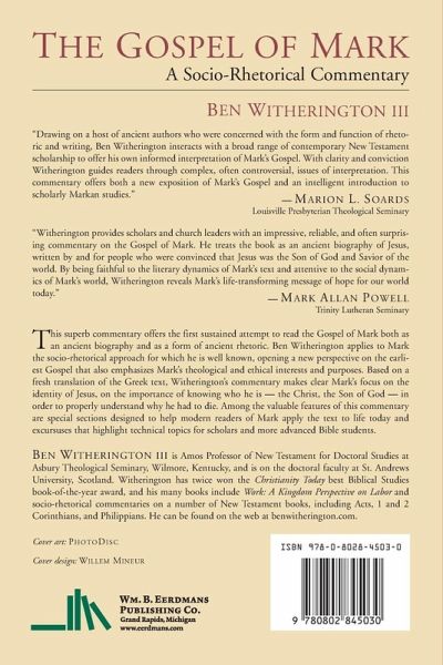 This book offers the first sustained attempt to read the Gospel of Mark both as an ancient biography and as a form of ancient rhetoric. Ben Witherington applies to Mark the socio-rhetorical approach for which he is well known, opening a fresh new perspective on the earliest Gospel. Written when the fledging Christian faith was experiencing a major crisis during the Jewish war, Mark provides us with the first window on how the life and teachings of Jesus were presented to a largely non-Jewish audience. According to Witherington, the structure of Mark demonstrates that this Gospel is biographically focused on the identity of Jesus and the importance of knowing who he is--the Christ, the Son of God. This finding reveals that Christology stood at the heart of the earliest Christians' faith. It also shows how important it was to these earliest Christians to persuade others about the nature of Jesus, both as a historical figure and as the Savior of the world.