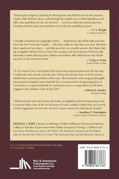 Balanced, comprehensive survey of the critical questions involved in studying the four Gospels In this book, through a distinctive evangelical and critical approach, Michael Bird explores the historical development of the four canonical Gospels. He shows how the memories and faith of the earliest believers formed the Gospel accounts of Jesus that got written and, in turn, how these accounts further shaped the early church. Bird's study clarifies the often confusing debates over the origins of the canonical Gospels. Bird navigates recent concerns and research as he builds an informed case for how the early Christ followers wrote and spread the story of Jesus -- the story by which they believed they were called to live. The Gospel of the Lord is ideal for students or anyone who wants to know the story behind the four Gospels. Watch an interview with Michael Bird from our Eerdmans Author Interview Series:
