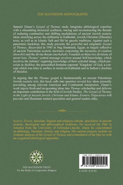 A new translation from Coptic and Greek texts, and an in-depth study of The Gospel of Thomas, integrating philological expertise with historical synthesis, tracing and reconstructing the threads of ancient Jewish esoteric ideas stretching across the millennia in Kabbalah, Jewish-Christian (Ebionite) texts, as well as in Islamic Sufi and Shi'ite gnostic traditions. Zinner's work injects fresh and invigorating ideas into Thomas scholarship and delivers an important contribution to the field of Jewish Studies.