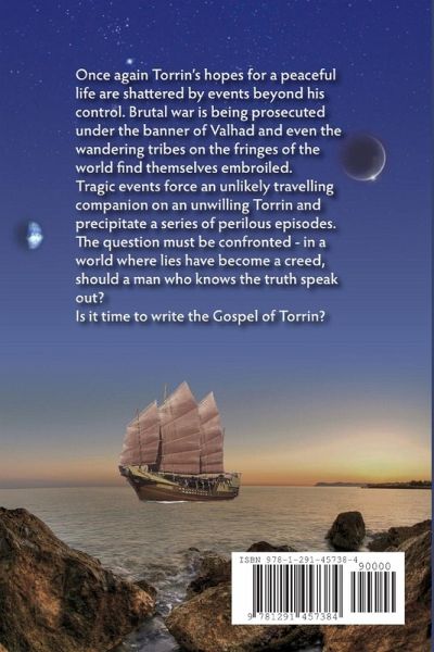 The slow turning world may be far from planet Earth but its population is human in the extreme. The author holds a dark mirror to our own history as he delves into religious extremism, ethnic cleansing and colonialism. Torrin, a reluctant and unlikely hero, finds himself bereaved by an atrocity of war. An ill-judged quest for vengeance precipitates perilous episodes and unites him with an unlikely companion. The sanctuary that Torrin craves must, it seems, come at a price demanded from him by powerful men. Manipulated, deceived and bereft, with all hope gone, time is running out... There is optimism here too, that the better nature of humanity can prevail. Torrin's relationships with his sons, his estranged wife and his travelling companion are never easy, but, tested to the extreme, they endure. The book might be classed as fantasy, but there is no magic to resolve the issues. It could be described as science fiction but there is no technology here beyond the printing press and the cannon ball.