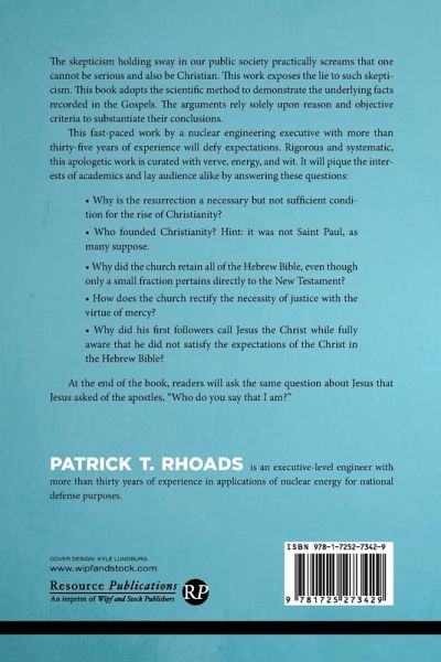 The skepticism holding sway in our public society practically screams that one cannot be serious and also be Christian. This work exposes the lie to such skepticism. This book adopts the scientific method to demonstrate the underlying facts recorded in the Gospels. The arguments rely solely upon reason and objective criteria to substantiate their conclusions. This fast-paced work by a nuclear engineering executive with more than thirty-five years of experience will defy expectations. Rigorous and systematic, this apologetic work is curated with verve, energy, and wit. It will pique the interests of academics and lay audience alike by answering these questions: -Why is the resurrection a necessary but not sufficient condition for the rise of Christianity? -Who founded Christianity? Hint: it was not Saint Paul, as many suppose. -Why did the church retain all of the Hebrew Bible, even though only a small fraction pertains directly to the New Testament? -How does the church rectify the necessity of justice with the virtue of mercy? -Why did his first followers call Jesus the Christ while fully aware that he did not satisfy the expectations of the Christ in the Hebrew Bible? At the end of the book, readers will ask the same question about Jesus that Jesus asked of the apostles, ""Who do you say that I am?""