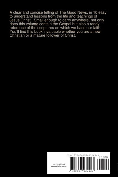 A clear and concise telling of The Good News, in 10 easy to understand lessons from the life and teachings of Jesus Christ. Small enough to carry anywhere, not only does this volume contain the Gospel but also a ready reference of the scriptures on which we base our faith. You'll find this book invaluable whether you are a new Christian or a mature follower of Christ.