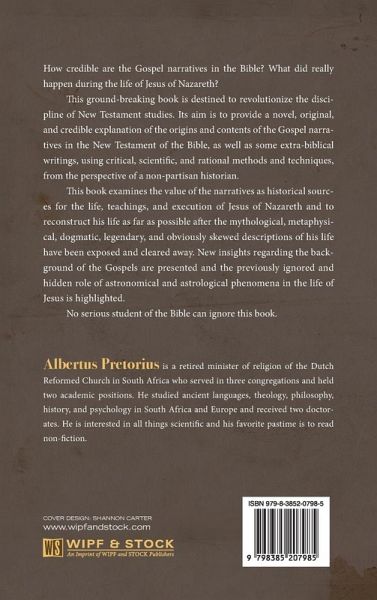How credible are the Gospel narratives in the Bible? What did really happen during the life of Jesus of Nazareth? This ground-breaking book is destined to revolutionize the discipline of New Testament studies. Its aim is to provide a novel, original, and credible explanation of the origins and contents of the Gospel narratives in the New Testament of the Bible, as well as some extra-biblical writings, using critical, scientific, and rational methods and techniques, from the perspective of a non-partisan historian. This book examines the value of the narratives as historical sources for the life, teachings, and execution of Jesus of Nazareth and to reconstruct his life as far as possible after the mythological, metaphysical, dogmatic, legendary, and obviously skewed descriptions of his life have been exposed and cleared away. New insights regarding the background of the Gospels are presented and the previously ignored and hidden role of astronomical and astrological phenomena in the life of Jesus is highlighted. No serious student of the Bible can ignore this book.