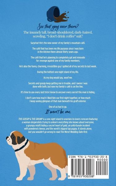 See that guy over there? The insanely tall, broad-shouldered, dark-haired, scowling, "I don't drink coffee" suit? Surprise! He's the new owner of my family's mountain café. The café that has been my life purpose since I was born in the kitchen there almost thirty years ago. The café that he's planning to completely gut and renovate for revenge against one of my family members. He's also the funny, charming, irresistible guy I spilled all of my secrets to last week. During the hottest one-night stand of my life. As my dog would say, woof me. Secrets and gossip keep getting me in trouble, and I swore I was done with both, but now my family's café is on the line. It's time to use every last trick I know to uncover every secret this man is hiding. I don't care how much I liked him our first night together, or how much I keep seeing glimpses of that man beneath his gruff exterior. One of us has to go. It won't be me. The Gossip & The Grump is a one night stand to enemies to lovers romcom featuring a woman desperately trying to unlearn everything she knows about everyone, a grumpy misfit hiding a secret heart of gold, an unfortunate incident with powdered cheese, and the world's biggest lap puppy. It stands alone, but you wouldn't go wrong to read The Worst Wedding Date first.