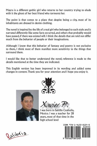 Mayra is a different gothic girl who returns to her country trying to elude with it the ghost of her best friend who torments her. The point is that comes to a place that despite being a city, most of its inhabitants are dressed in denim clothing. The novel is inspired by the life of a real girl who belonged to such style and is narrated differently like some facts occurred, and others that probably would have passed, if there was existed will. I think the details that are told not differ much from the behavior of people or their imaginations. Although I know that this behavior of fantasy and poetry is not exclusive to them, I think most of them manifest more sensitivity to the things that surround them. I would like that to better understand the novel; reference is made to the details mentioned at the time they are indicated. This English version has been improved in its wording and added some changes in content. Thank you for your attention and I hope you enjoy it.