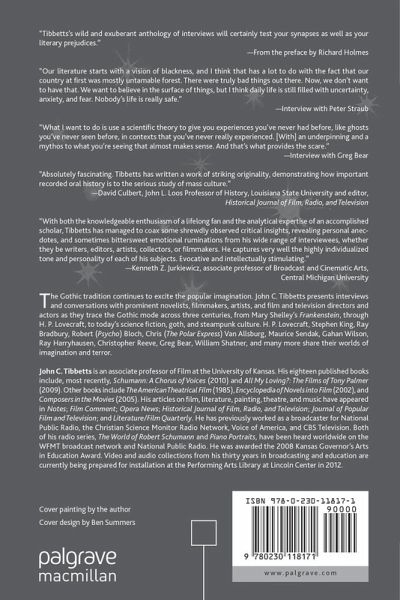 "The book serves as a wide-reaching introduction to a variety of viewpoints on the Gothic, extending the Gothic far beyond the Romantic-era horror stories most commonly associated with the mode by other writers. The true proof of Tibbetts' skill at the art of the interview is perhaps the effect that his bookis capable of having on an intelligent reader: rather than ending a conversation, the book opens up a discussion to the critical community at large." - Journal of the Fantastic in the Arts