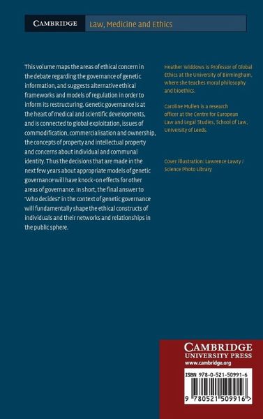This volume maps the areas of ethical concern in the debate regarding the governance of genetic information, and suggests alternative ethical frameworks and models of regulation in order to inform its restructuring. Genetic governance is at the heart of medical and scientific developments, and is connected to global exploitation, issues of commodification, commercialisation and ownership, the concepts of property and intellectual property and concerns about individual and communal identity. Thus the decisions that are made in the next few years about appropriate models of genetic governance will have knock-on effects for other areas of governance. In short the final answer to 'Who Decides?' in the context of genetic governance will fundamentally shape the ethical constructs of individuals and their networks and relationships in the public sphere.