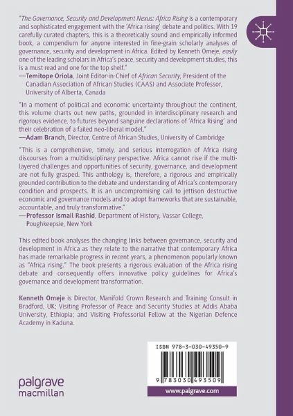 "The volume is ambitious in its attempt to cover the governance, security, and development nexus in breadth and depth. ... the volume does offer interesting insights into the governance and development nexus. ... the collective volume offers an interesting and compelling survey that will be a valuable contribution to the Africa rising debate." (Emmanuel Balogun, Yearbook on the African Union, Vol. 2, 2021)