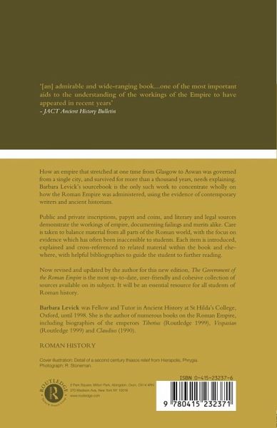 This book reveals how an empire that stretched from Glasgow to Aswan in Egypt could be ruled from a single city and still survive more than a thousand years. The Government of the Roman Empire is the only sourcebook to concentrate on the administration of the empire, using the evidence of contemporary writers and historians.