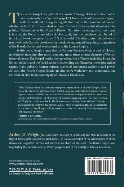 The Fourth Gospel is a political document. Although it has often been interpreted primarily as a ""spiritual gospel,"" it has much to offer readers engaged in the difficult task of negotiating life lived under the dominion of empire, whether in the first or twenty-first century. This book gives careful attention to the political dimensions of the Gospel's Passion Narrative, including the arrest scene (18:1-12), the Roman show trial (18:28--19:16), and the crucifixion and burial of Jesus (19:16-40). It employs James C. Scott's model of hidden transcripts and examines the Fourth Gospel's use of irony as it seeks to understand the political dimensions of the Fourth Gospel and its relationship to the Roman Empire. In this book, Wright argues that the Passion Narrative displays part of a Johannine hidden transcript that resists, contests, and at times mimics elements of Roman imperial power. The Gospel mocks the representatives of Rome, including Pilate, the Roman soldiers, and the Jewish authorities, eroding confidence in the empire and its agents. It also subverts Roman imperial claims of dominance, authority, and power. As such, the Fourth Gospel fosters an alternative worldview and community, one centered on faith in the sovereignty of Jesus and Israel's God.