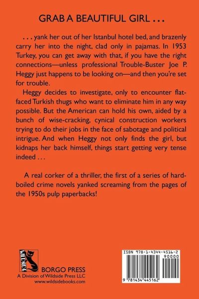Grab a beautiful girl, yank her out of her Istanbul hotel bed, and brazenly carry her into the night, clad only in pajamas. In 1953 Turkey, you can get away with that, if you have the right connections--unless professional Trouble-Buster Joe P. Heggy just happens to be looking on--and then you're set for trouble. Heggy decides to investigate, only to encounter flat-faced Turkish thugs who want to eliminate him in any way possible. But the American can hold his own, aided by a bunch of wise-cracking, cynical construction workers trying to do their jobs in the face of sabotage and political intrigue. And when Heggy not only finds the girl, but kidnaps her back himself, things start getting very tense indeed... A real corker of a thriller, the first of a series of hardboiled crime novels yanked screaming from the pages of the 1950s pulp paperbacks!