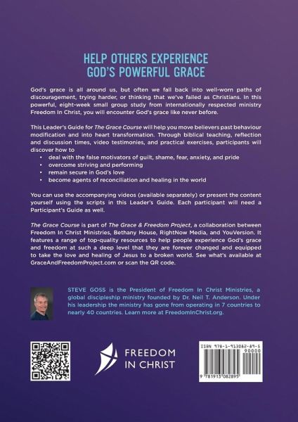 Help Others Experience God's Powerful Grace God's grace is all around us, but often we fall back into well-worn paths of discouragement, trying harder, or thinking that we've failed as Christians. In this powerful, eight-week small group study from internationally respected ministry Freedom In Christ, you will encounter God's grace like never before. This Leader's Guide for The Grace Course will help you move believers past behaviour modification and into heart transformation. Through biblical teaching, reflection and discussion times, video testimonies, and practical exercises, participants will discover how to deal with the false motivators of guilt, shame, fear, anxiety, and pride overcome striving and performing remain secure in God's love become agents of reconciliation and healing in the world You can use the accompanying videos (available separately) or present the content yourself using the scripts in this Leader's Guide. Each participant will need a Participant's Guide as well. The Grace Course is part of The Grace & Freedom Project, a collaboration between Freedom In Christ Ministries, Bethany House, RightNow Media, and YouVersion. It features a range of top-quality resources to help people experience God's grace and freedom at such a deep level that they are forever changed and equipped to take the love and healing of Jesus to a broken world.