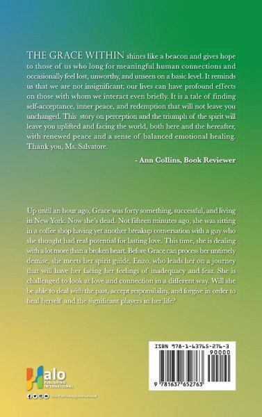 Up until an hour ago, Grace was forty something, successful, and living in New York. Now she's dead. Not fifteen minutes ago, she was sitting in a coffee shop having yet another breakup conversation with a guy who she thought had real potential for lasting love. This time, she is dealing with a lot more than a broken heart. Before Grace can process her untimely demise, she meets her spirit guide, Enzo, who leads her on a journey that will have her facing her feelings of inadequacy and fear. She is challenged to look at love and connection in a different way. Will she be able to deal with the past, accept responsibility, and forgive in order to heal herself and the significant players in her life?